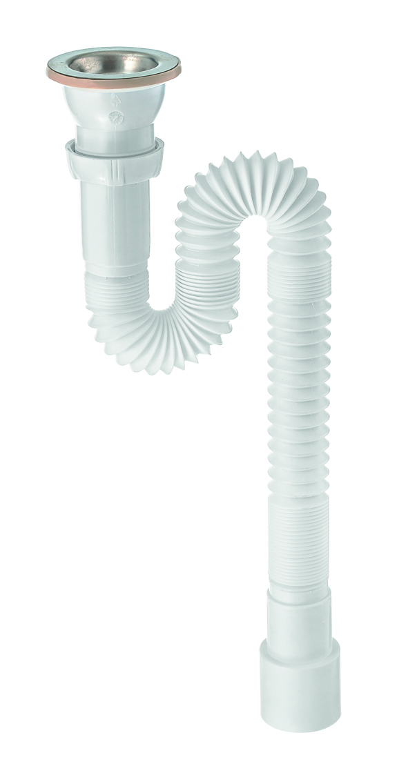 Сифон гофрированный с выпуском из металла и гибкой трубой (L800 мм)Как купить