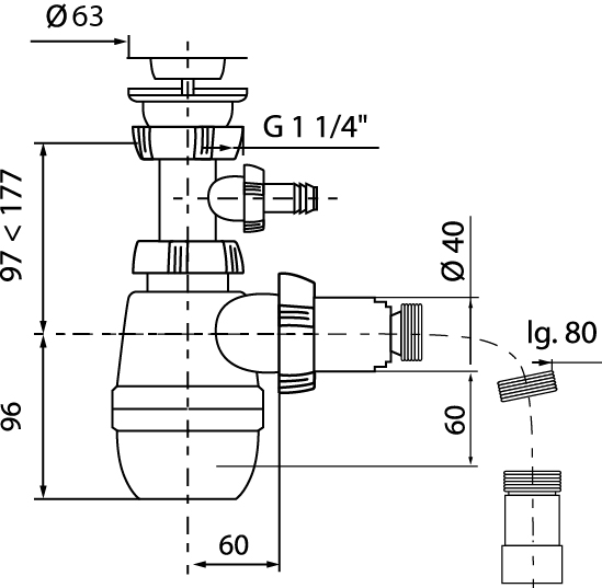 Сифон предназначен для отвода воды из нержавеющих и эмалированных моек, а также чугунных и фаянсовых раковин.