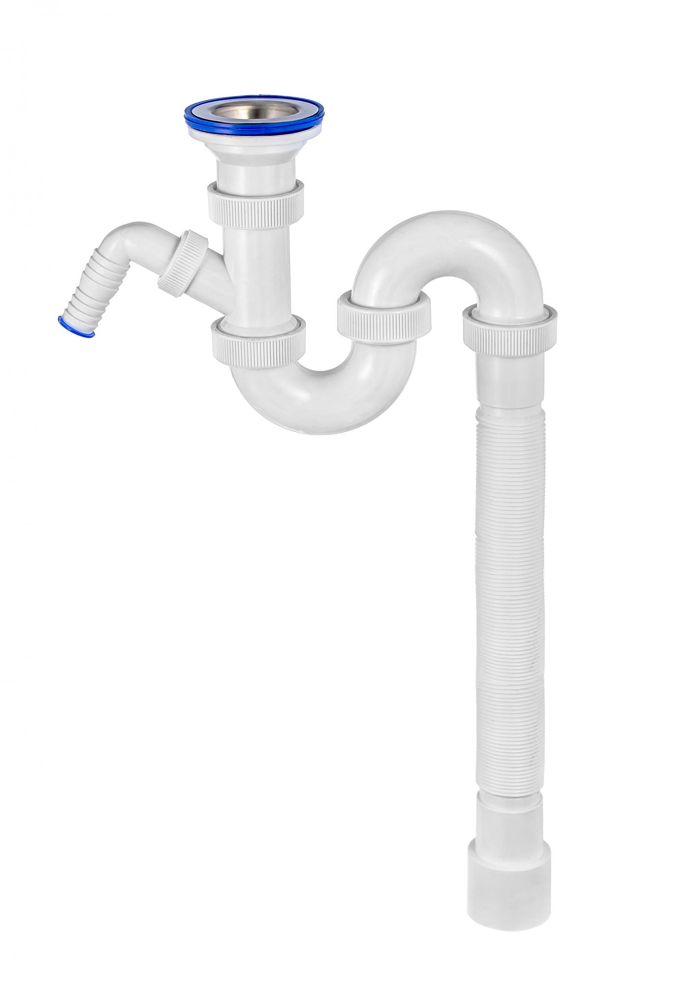 Сифон предназначен для отвода воды из нержавеющих и эмалированных моек, а также чугунных и фаянсовых раковин.