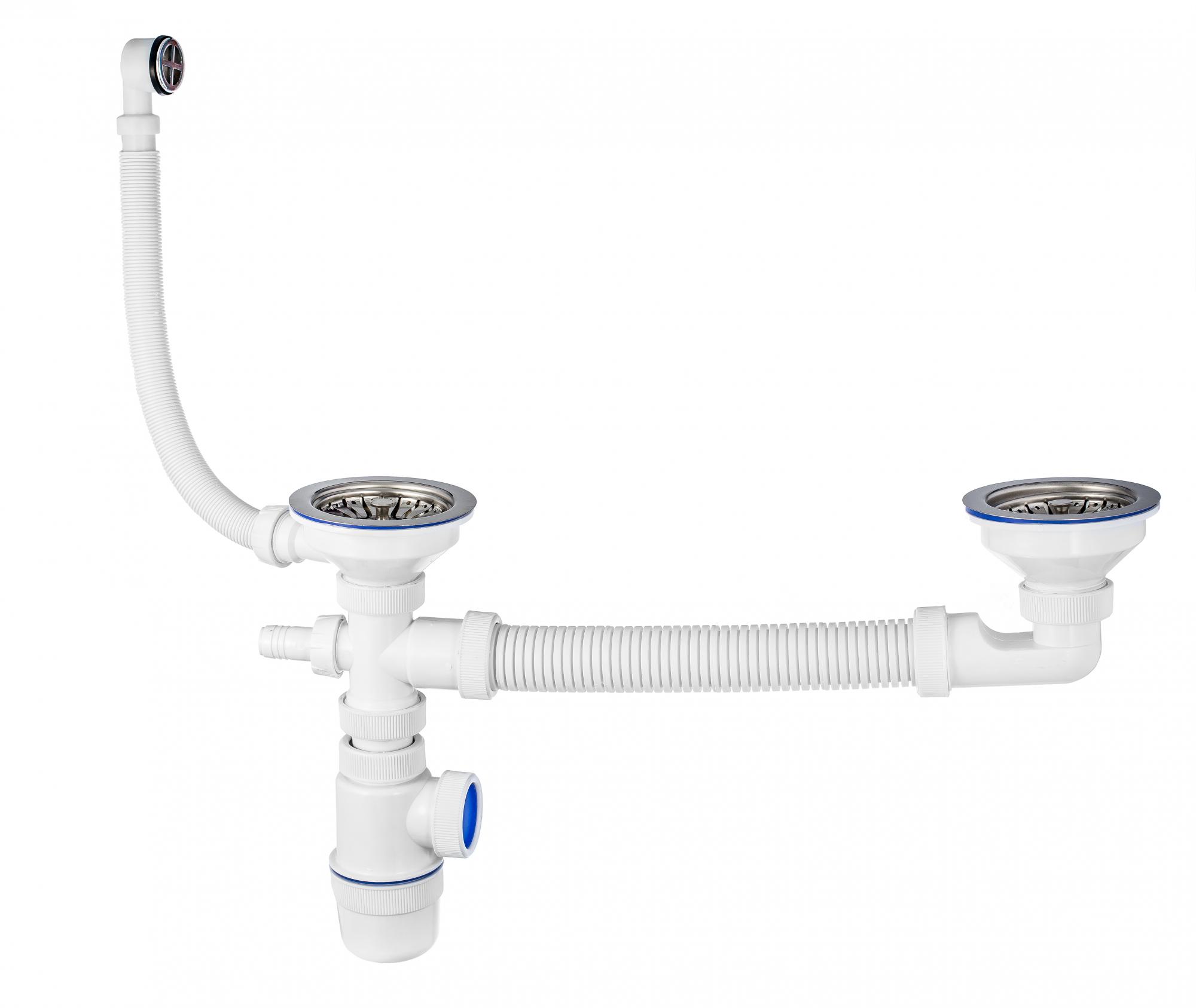 Сифон "Элит" для двойной мойки с отводом для стиральной машины и переливомКак купить
