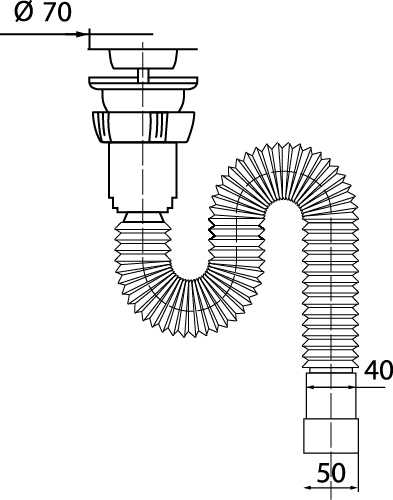 Гофросифон 1 1/2" х 40/50 с нержавеющей чашкой д.70 L - 1200ммКак купить