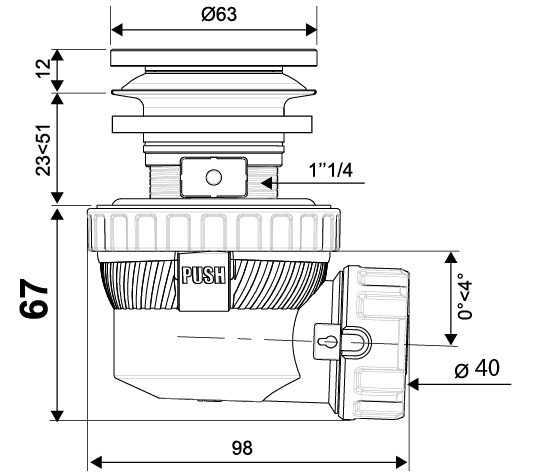 WIRQUIN Сифон НАНО 6.7 для раковин или биде без перелива (с сухим затвором,)