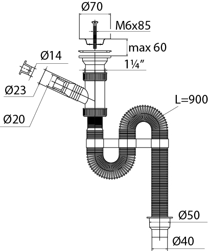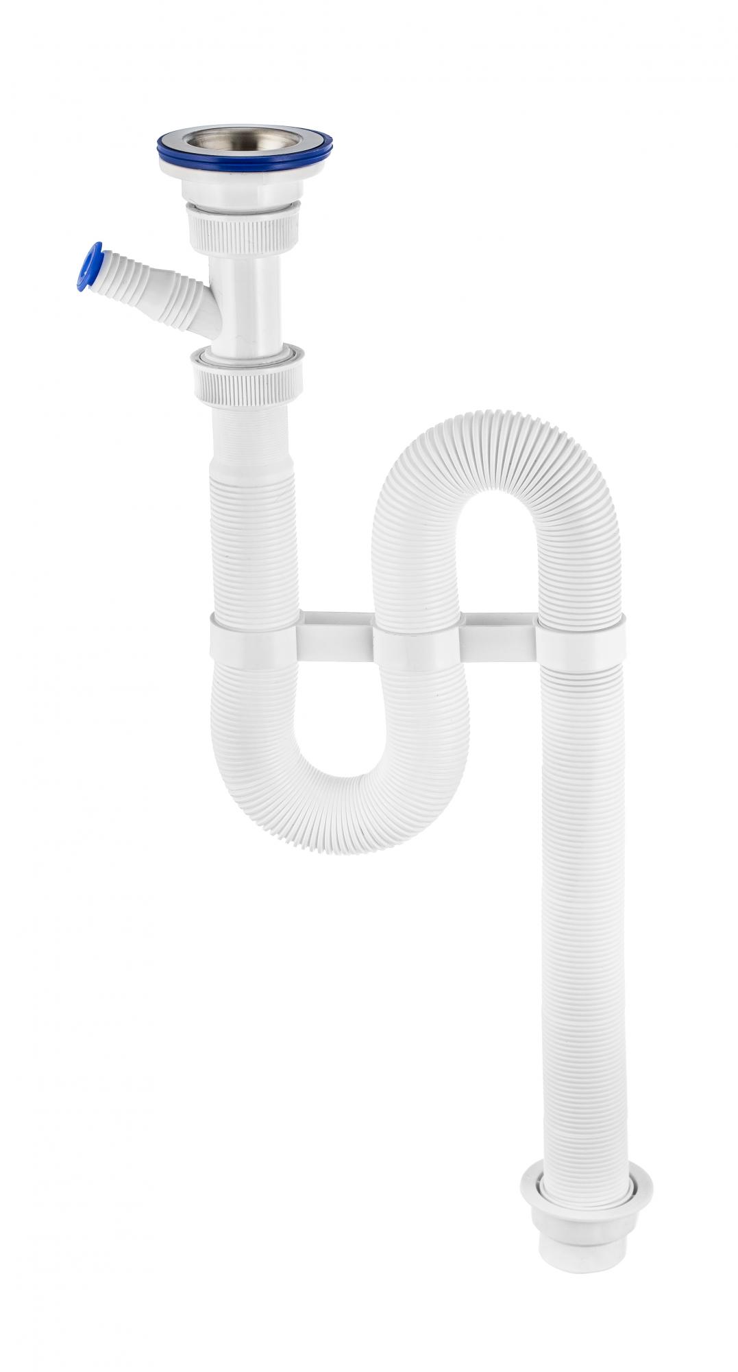 VIRPLAST Cифон гофрированный "VIR" с нержавеющей чашкой и отводом для стиральной или посудомоечной машины
