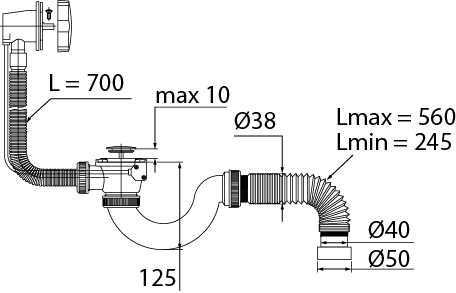 VIRPLAST ВИРПЛАСТ Сифон "МИНИ Элит" для ванн с автоматическим сливом и г/т (Ø40/50)