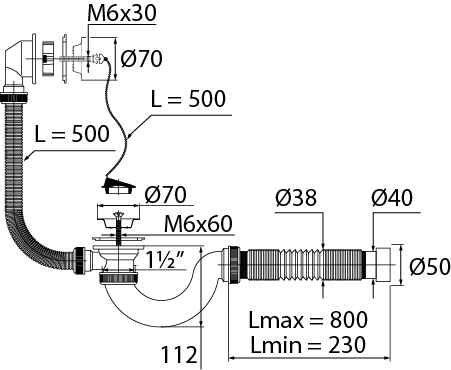 VIRPLAST Слив-перелив "МИНИ Элит" с нержавеющими чашками и гофротрубой (Ø40/50)