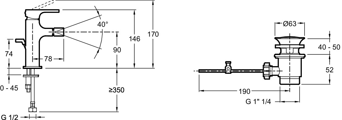 JACOB DELAFON Смеситель для биде STRAYT, стандартная модель