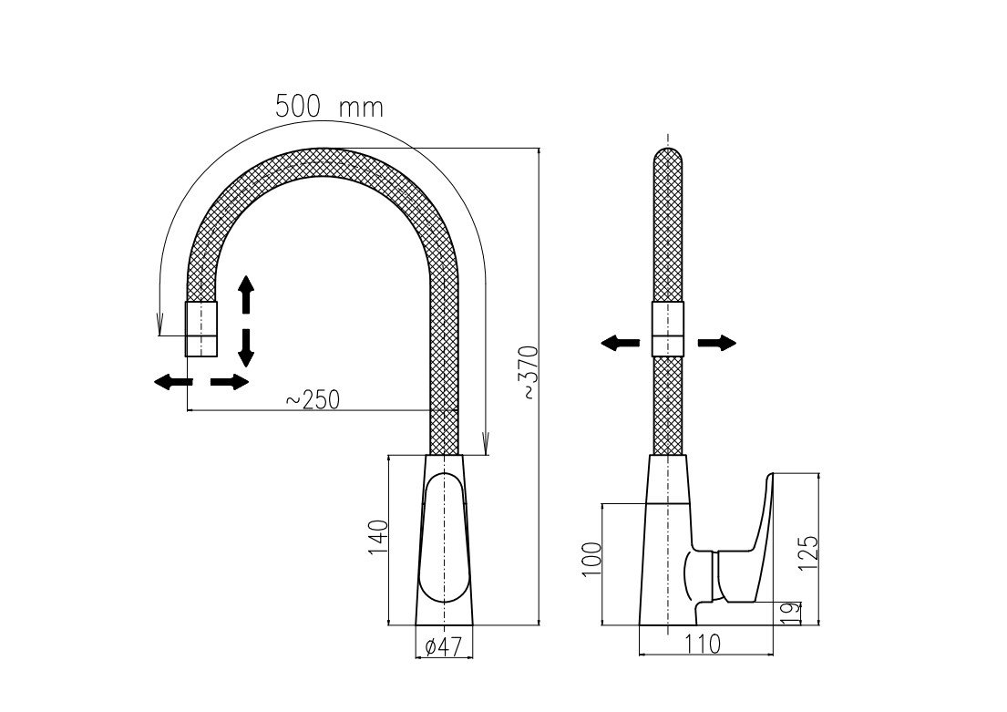 Смеситель для кухни AMUR с поворотным и гибким изливом (хром/черный)Покупка в интернет-магазине КВАРТАЛ — выгодная и безопасная!