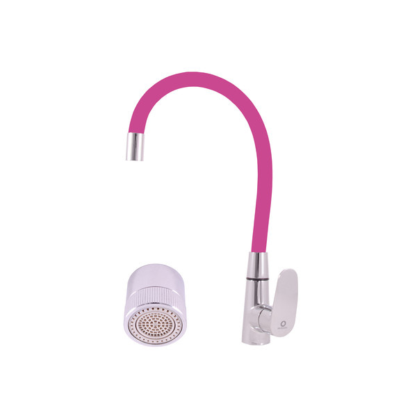 RAV SLEZAK Смеситель для кухни AMUR с поворотным и гибким изливом, аэратор с поворотом на душ (хром/розовый)