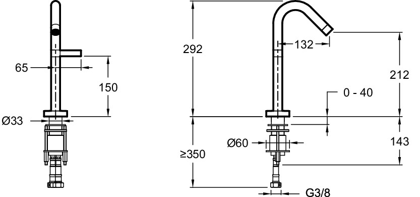 Высокий смеситель для раковины STILLNESS с гибкой подводкой и без донного клапана.
