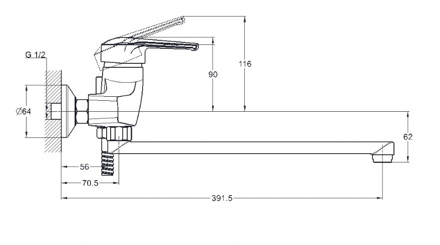 В комплект смесителя Solone входят: душевая лейка (3 функции), держатель и шланг в металлической оплётке (1500 мм).