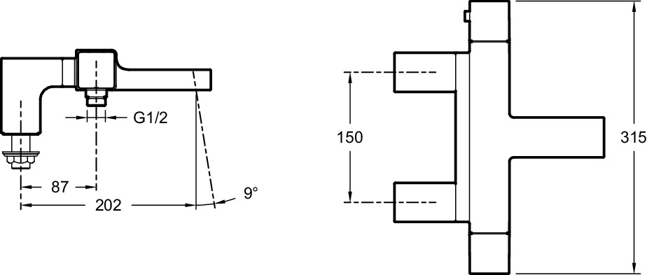 Термостатический настенный смеситель для ванны/душа STRAYT, устанавливаемый на деку.