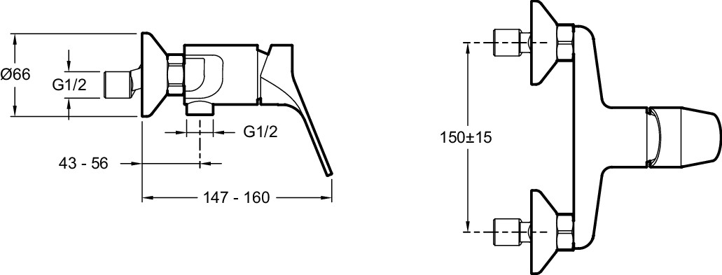 Однорычажный настенный смеситель для душа BRIVE без донного клапана.