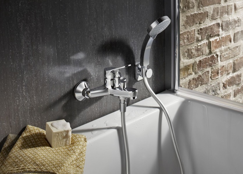 Однорычажный смеситель для ванны/душа BRIVE легко очищается с помощью влажной ткани. Экономия воды: низкий расход воды при оптимальной производительности.