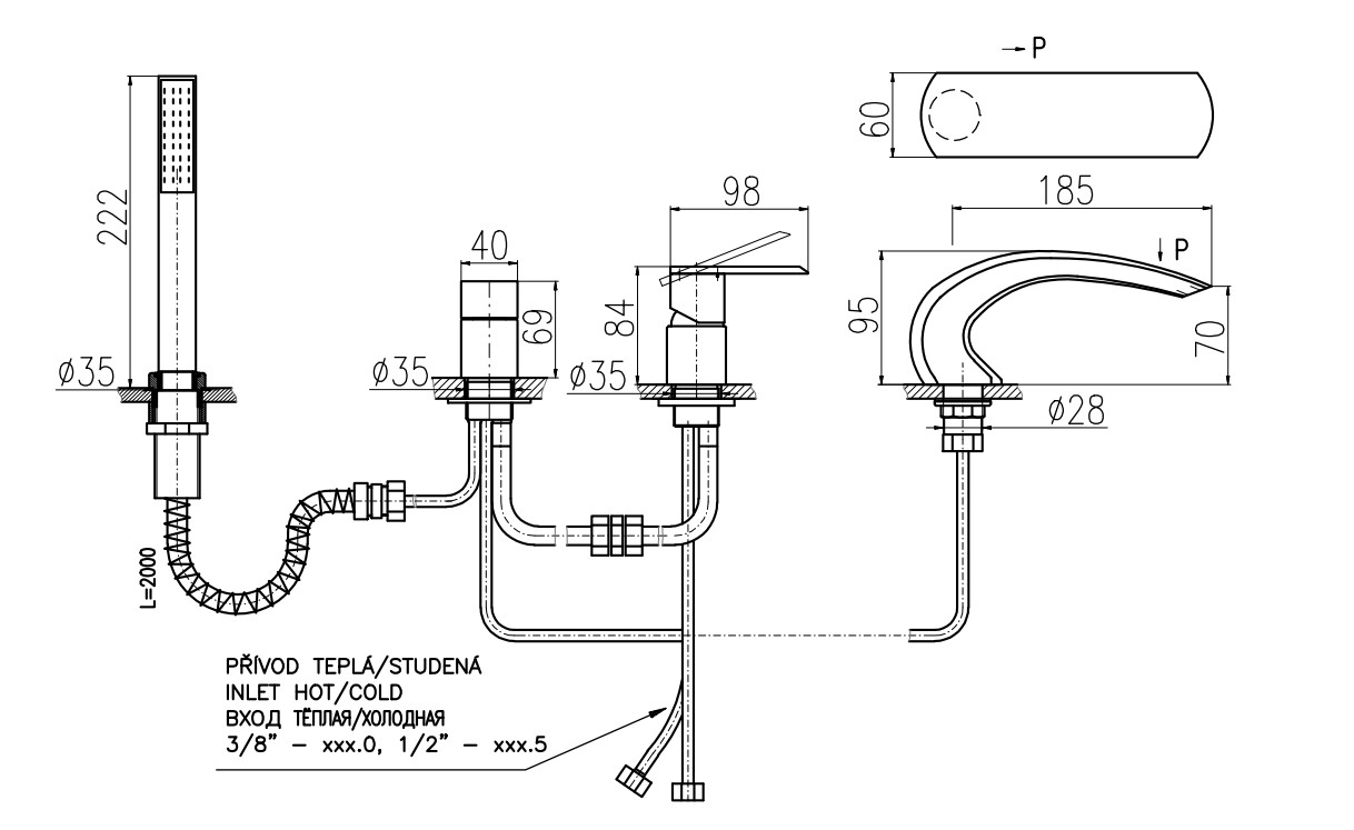 RAV SLEZAK Смеситель для ванны LOIRA на 4 отверстия