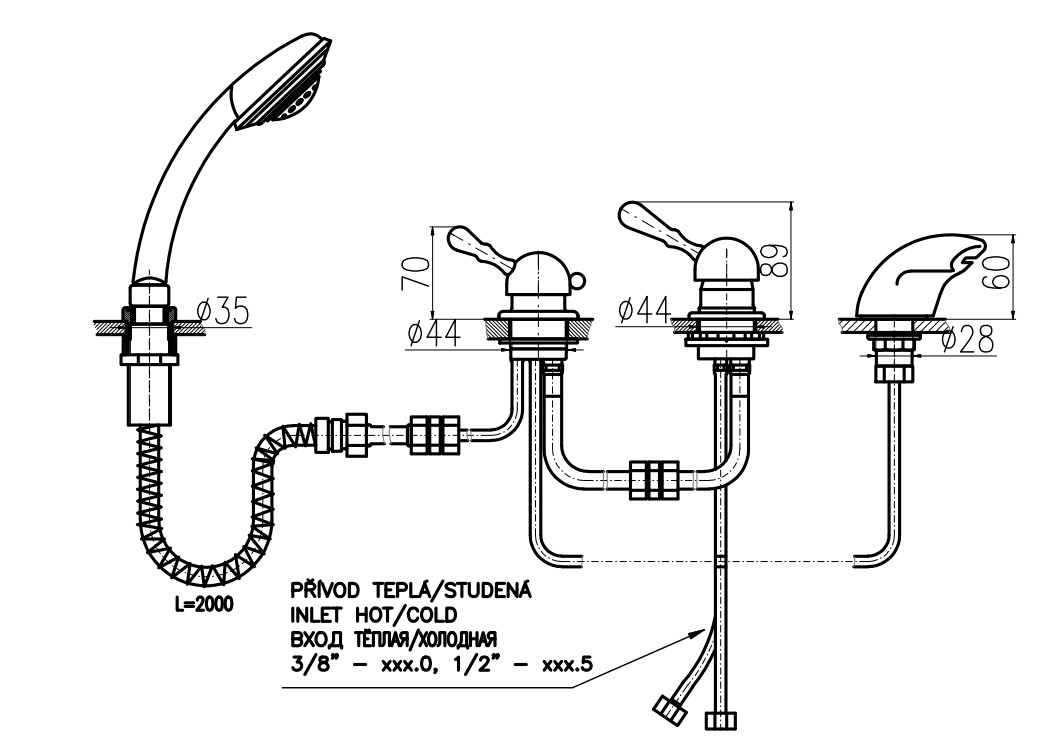 Смесители для ванны LABE на 4-е отверстия выполнены в плавных геометрических линиях и гармонично дополнят современный интерьер. Смесители производятся только в бронзовом цвете. В комплект со смесителем входят: латунные рукоятки, лейка, шланг с пружиной (2 м) и керамический переключатель.