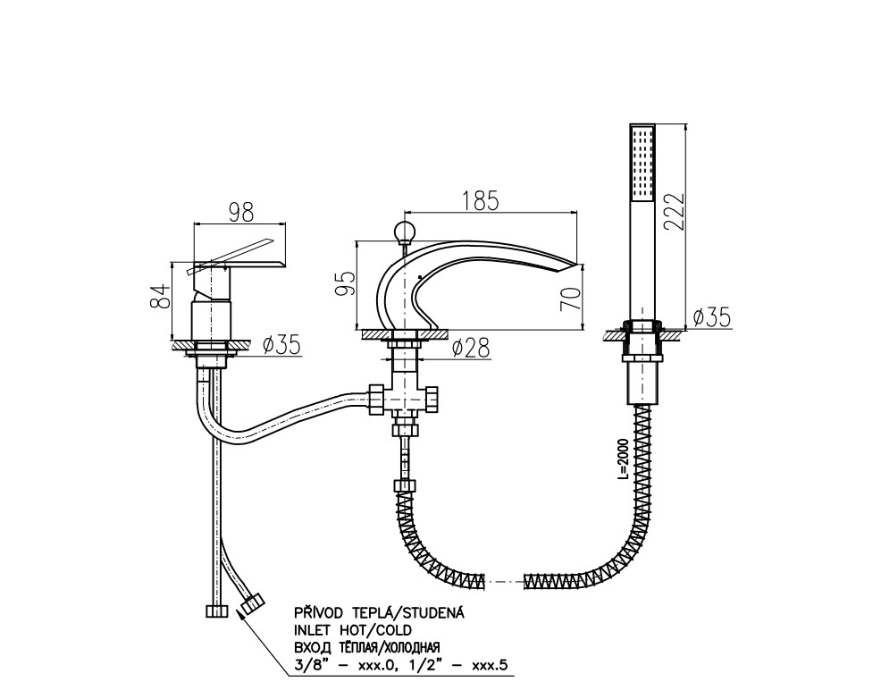 Смесители для ванны LOIRA на 3 отверстия выполнены в плавных геометрических линиях и гармонично дополнят современный интерьер. В комплект со смесителем входят: латунные рукоятки, лейка и шланг с пружиной (2 м).