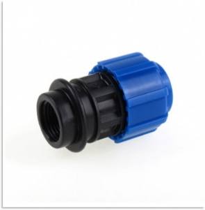 Муфта компрессионная с внутренней резьбой. Предназначена, для возможности легкого перехода со стального трубопровода на трубопровод из ПНД труб, так как имеет резьбу соответствующую размерам и стандартам стальных трубных резьб. Кроме этого муфта компрессионная с внутренней резьбой может учувствовать в строительстве различных комбинаций отводов и разветвлений с применением других компрессионных ПНД фитингов.