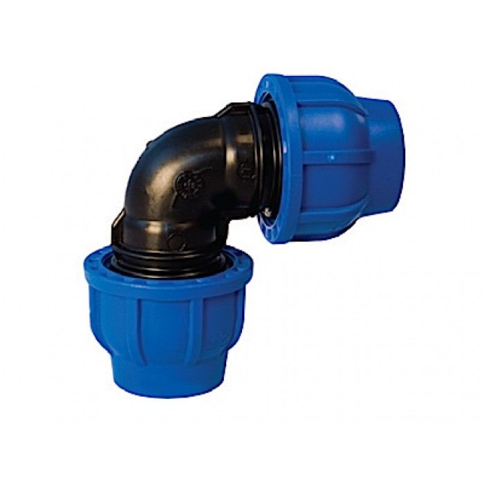 Отвод компрессионный. Предназначен для обеспечения надежного соединения двух полиэтиленовых труб равного диаметра между собой, под прямым углом. Может использоваться при строительстве систем питьевого или технического водопровода, систем напорной или безнапорной канализации, для устройства кабельных каналов из ПНД труб с рабочим давлением до 16 атмосфер для труб диаметром от 20мм до 63мм.