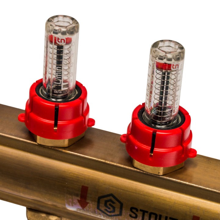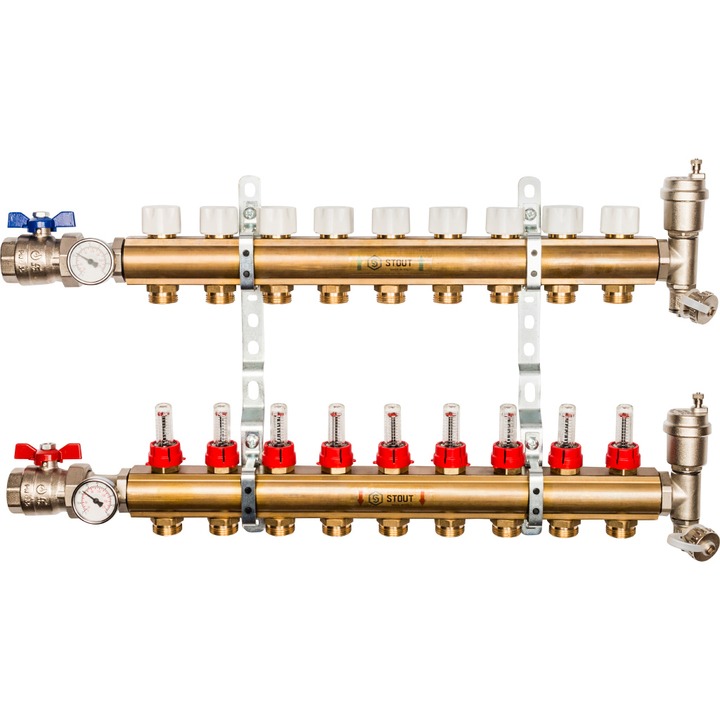 STOUT Коллектор в сборе с расходомерами 9 выходов, латунь