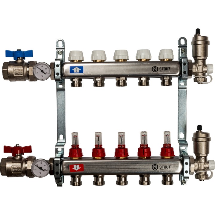 STOUT Коллектор в сборе с расходомерами 5 выходов, нержавеющая сталь