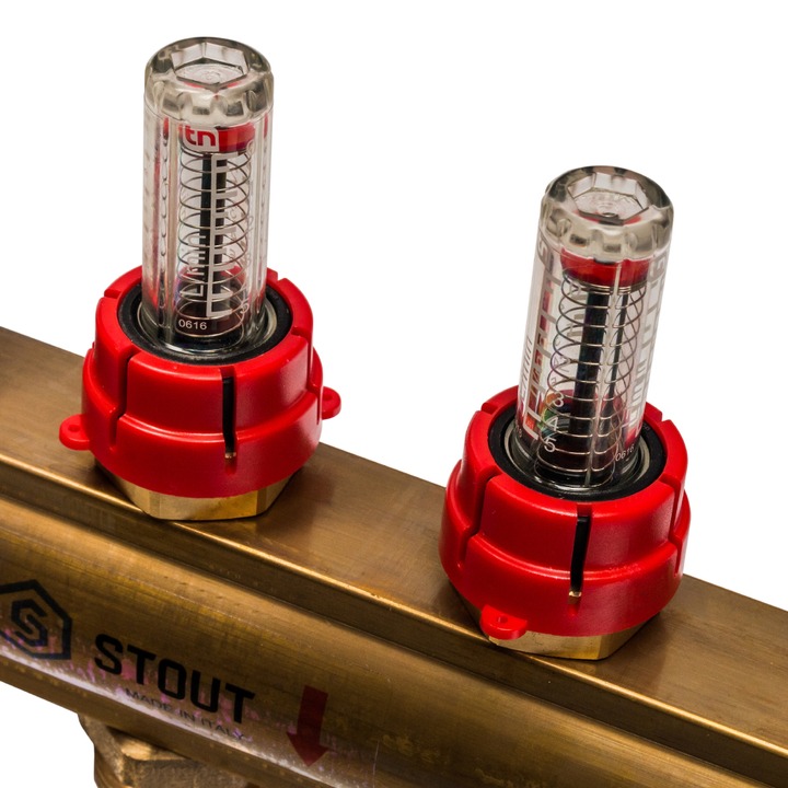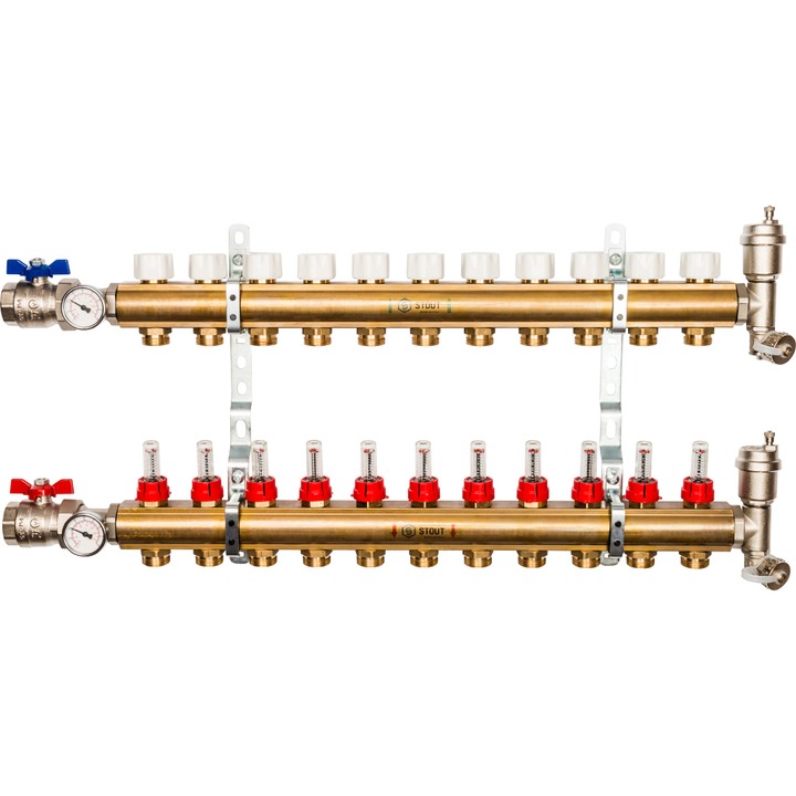 STOUT Коллектор в сборе с расходомерами 11 выходов, латунь