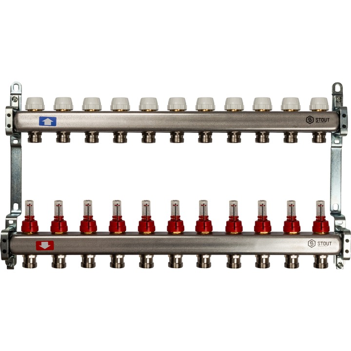STOUT Коллектор с расходомерами 11 выходов, нержавеющая сталь