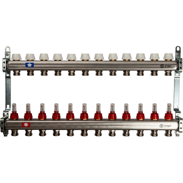 STOUT Коллектор с расходомерами 12 выходов, нержавеющая сталь