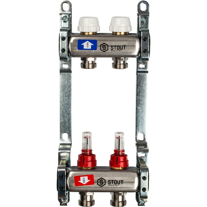 STOUT Коллектор с расходомерами 2 выхода, нержавеющая сталь